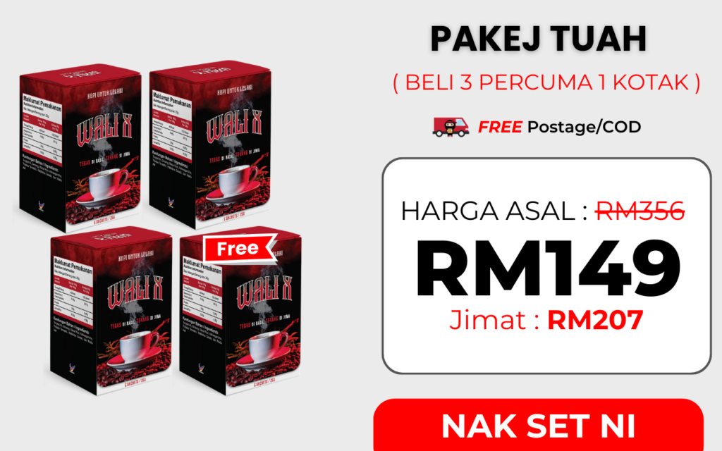 Formulasi Kopi WaliX Kajian Doktor Pakar Kesihatan Lelaki. Hanya Menggunakan Ekstrak Bahan Aktif Premium.