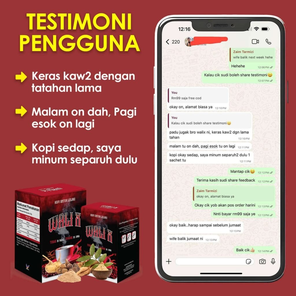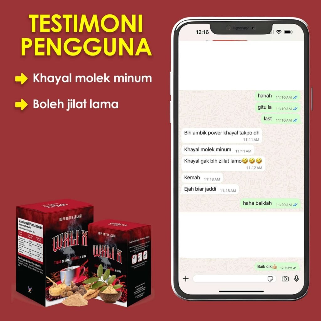 Kandungan hanya 100% bahan semula jadi. WALIX COFFEE juga membantu menaikkan syahwat, merangsang nafsu dan menambah sensasi seks.
